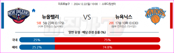 12월 22일 NBA 뉴올리언스 펠린컨즈 뉴욕 닉스 미국프로농구분석 스포츠분석